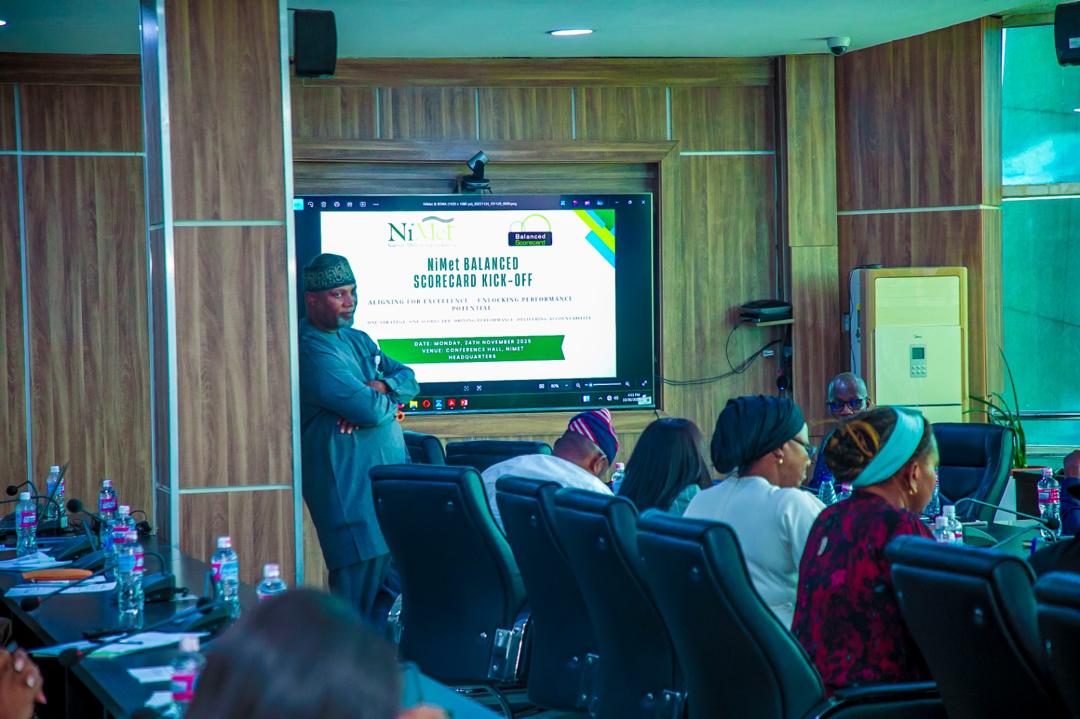 The Nigerian Meteorological Agency (NiMet) has begun an internal transformation process with the introduction of the Balanced Scorecard Performance Management System, designed to strengthen efficiency, accountability, and strategic alignment across the agency. NiMet held a kick-off meeting with its Directors and senior management staff today at the NiMet Headquarters, Abuja, to introduce the framework and discuss how the Balanced Scorecard can enhance performance management and improve service delivery. Declaring the meeting open, the Director General/CEO of NiMet, Prof. Charles Anosike, said staff welfare and capacity development remain top priorities for management, in line with the Renewed Hope Agenda of President Bola Ahmed Tinubu and the performance bond signed with the Minister of Aviation and Aerospace Development, Mr. Festus Keyamo, SAN. "We are starting a new journey at NiMet as we prepare to roll out a Balanced Scorecard Performance Management System. It is one of the global management tools organizations use to translate strategy into performance," Anosike said. "This meeting will help us improve our strategy formulation and create room for enduring creativity in the agency." He noted the rising importance of intangible assets such as intellectual property, human resources, data, innovation, and brand reputation in today's knowledge-driven economy. The Director General also highlighted that the system helps ensure proper alignment between strategy and objectives, enabling staff to clearly understand their roles and responsibilities in achieving the agency's goals. Speaking at the session, Mr. Kayode Sufianu, Founder/CEO of Balanced Scorecard West Africa, commended NiMet for taking a decisive step toward institutionalizing a globally recognized performance framework. He stated that the Balanced Scorecard "offers organizations a powerful structure for turning strategy into measurable outcomes," adding that NiMet's adoption of the system demonstrates strong leadership commitment to accountability, innovation, and improved public service. Prof. Anosike further emphasized that modern institutional value extends beyond financial records or physical assets. He stressed that value creation now depends on people’s ideas, customer relationships, innovation, and a strong organizational culture capable of delivering quality service. He described the engagement as a kick-off session that provides an overview of the Balanced Scorecard system and prepares the agency for the demanding but rewarding work ahead. He concluded his remarks by urging staff to embrace performance management as a foundation for improving service delivery, adding that while strategy sets the direction, successful organizations distinguish themselves by how effectively they implement, execute, and sustain their goals.
