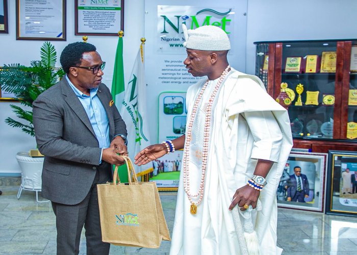 The Director-General/CEO of the Nigerian Meteorological Agency (NiMet), Professor Charles Anosike, received His Royal Majesty, Oba Olayinka Oyetunde Ishola Jokotola II, the Olojudo Alayemore of Ido-Osun Kingdom, on a courtesy visit at the Agency’s headquarters in Abuja.