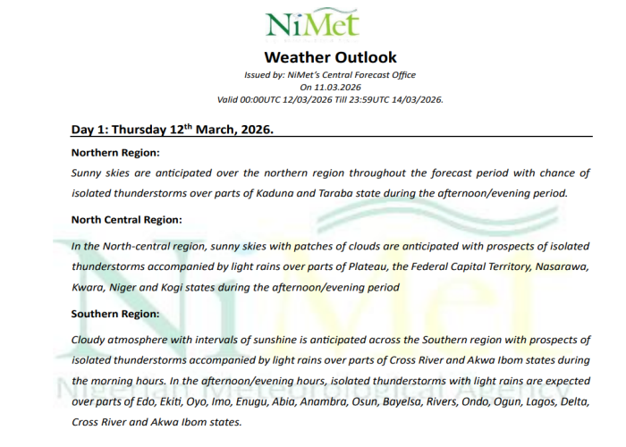 WEATHER BULLETIN ISSUED ON THE 8TH DECEMBER FOR THE 9TH, 10TH, AND 11TH DECEMBER, 2025.