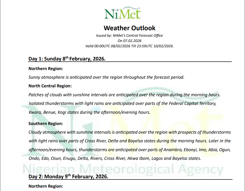 WEATHER BULLETIN ISSUED ON THE 11TH, FOR 12TH, 13TH AND 14TH OF FEBRUARY, 2026.