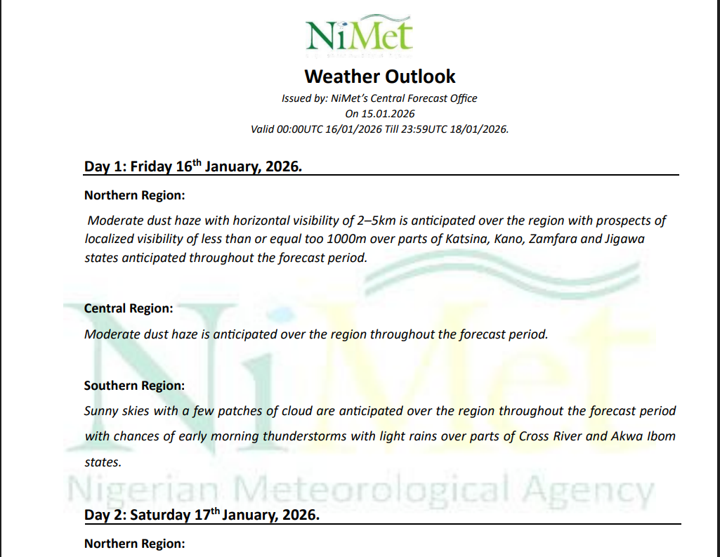 WEATHER OUTLOOK ISSUED ON 23.01.2025 AND VALID 00:00 24.01.2025 TO 23:59 26.01.2025