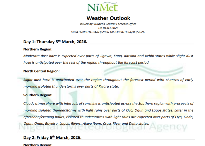 WEATHER OUTLOOK ISSUED ON 03.02.2025 AND VALID 00:00 04.02.2025 TO 23:59 06.02.2025