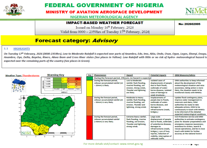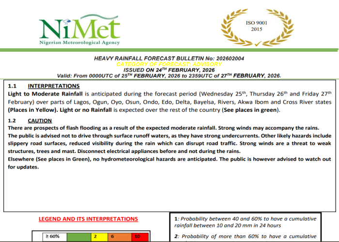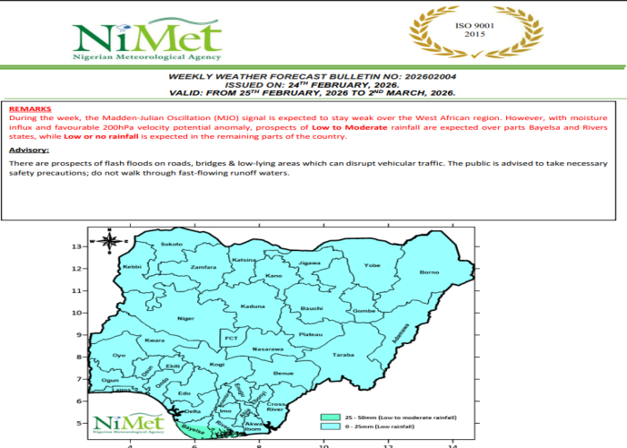 The July Flash Flood Risk Mapping shows the states with varying probable risks of experiencing flash flooding events as a result of the setting-in of the onset of rainfall across the country as predicted in NiMet Seasonal Climate Prediction (SCP) and some advisories to mitigate its impacts.