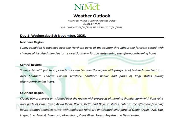HEAVY-RAINFALL-FORECAST-BULLETIN No.: 202511031 CATEGORY OF FORECAST: WATCH ISSUED ON 4TH NOVEMBER, 2025 Valid: From 0000 UTC of 5TH NOVEMBER, 2025 to 2359 UTC of 7TH NOVEMBER, 2025.