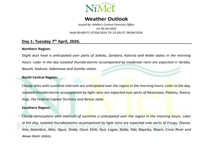 Weather Outlook Issued by: NiMet’s Central Forecast Office on 01.12.2025. Valid from 00:00 UTC 02/12/2025 till 23:59 UTC 04/12/2025.