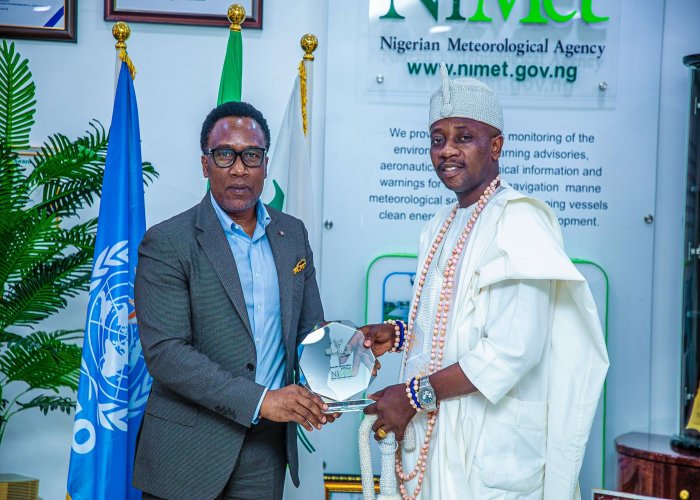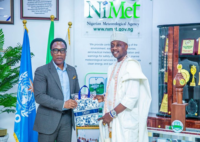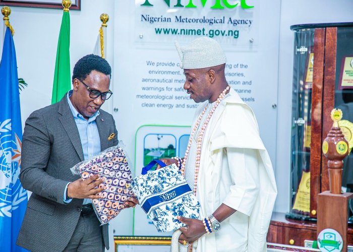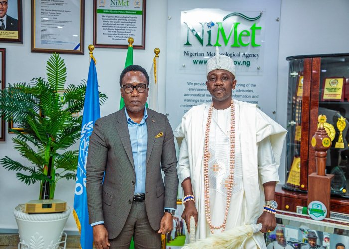 The Director-General/CEO of the Nigerian Meteorological Agency (NiMet), Professor Charles Anosike, received His Royal Majesty, Oba Olayinka Oyetunde Ishola Jokotola II, the Olojudo Alayemore of Ido-Osun Kingdom, on a courtesy visit at the Agency’s headquarters in Abuja.