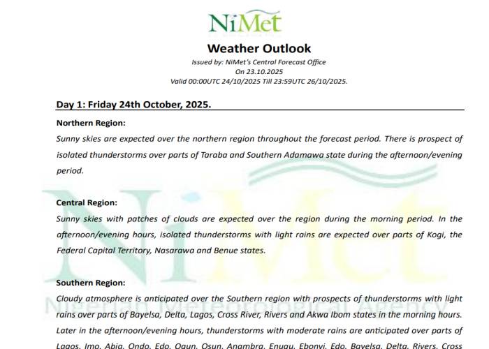 WEATHER BULLETIN ISSUED ON THE 25TH OCTOBER FOR, 26TH , 27TH AND 28TH OCTOBER, 2025.